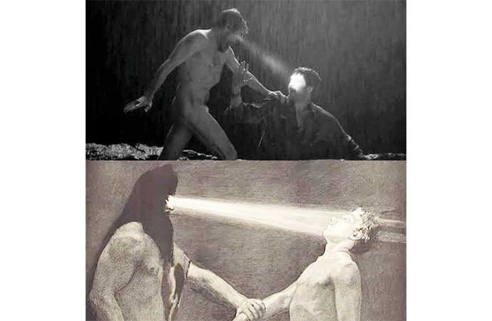 Robert Eggers'in 'The Lighthouse' (2019) adlı filmi ve Sascha Schneider'in 'Hypnosis';1904) adlı eseri