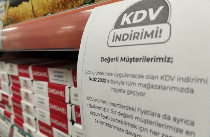 Cumhurbaşkanı Erdoğan’ın açıklaması ile 13 Şubat 2022 tarihli Resmi Gazete’de yayınlanarak yürürlüğe giren karar ile temel gıda ürünlerinde Katma Değer Vergisi yüzde 8’den yüzde 1’e indirildi. Bu indirim de tüketiciye yansımadı. Gıda sanayi ve marketler için KDV sorununa neden oldu.