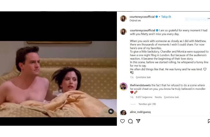 Perry’nin ölümün ardından dizide Chandler ile ilişki yaşayan Monica karakterine hayat veren Courteney Cox ilk kez sosyal medya hesabında paylaşım yaptı.