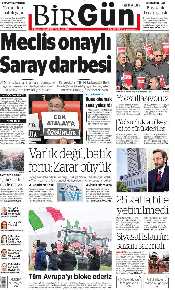 Anayasa Mahkemesi'nin kararına rağmen, TİP Hatay Milletvekili Can Atalay'ın vekilliği düşürüldü. Türkiye'de ilk kez AYM kararı tanınmadı ve bir milletvekilinin vekilliği düşürüldü.