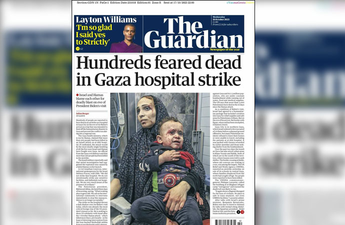 The Guardian (Britanya) | Gazze'deki hastane saldırısında yüzlerce kişinin ölmesinden korkuluyor