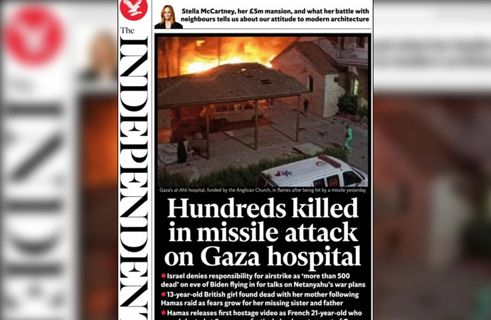 The Independent (Britanya) | Gazze'deki hastaneye düzenlenen füze saldırısında yüzlerce kişi öldü