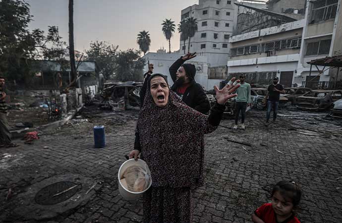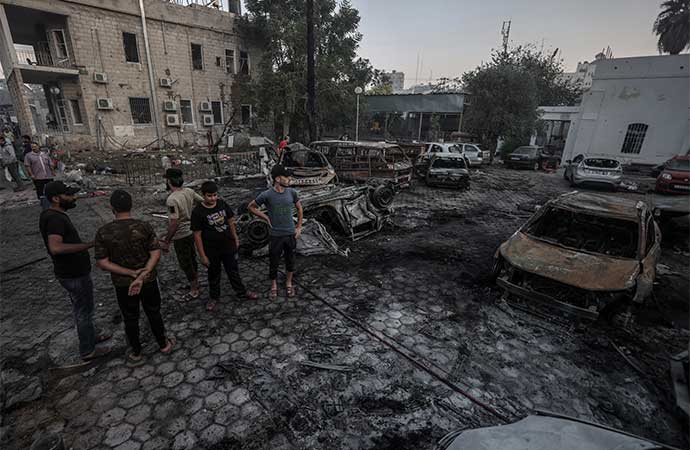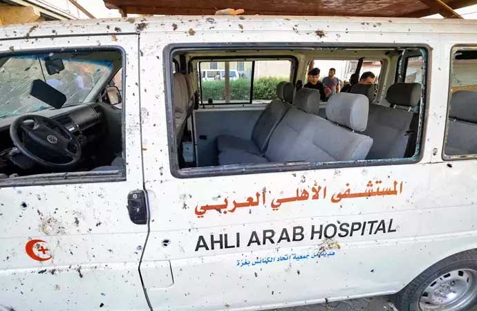 İsrail, Gazze’de Baptist Hastanesi hedef aldı. Filistin hükümetinin Gazze’deki Medya Ofisi Başkanı Salam Marouf yaptığı açıklamada, saldırılarda evleri yıkılan Filistinlilerin hastaneye sığındıklarını belirterek, binlerce Filistinlinin bulunduğu sırada İsrail savaş uçaklarının hastaneyi vurduğunu ifade etti. Saldırı’da 500 kişinin yaşamını yitirdiği belirtildi. Filistinli yetkililer hastanede sadece yaralıların değil saldırılar nedeniyle evsiz kalanların da olduğunu belirtti. Saldırının yarattığı yıkım ise gün ışığıyla ortaya çıktı. Bölgedekiler, kullanılabilir durumdaki eşyaları topladı.