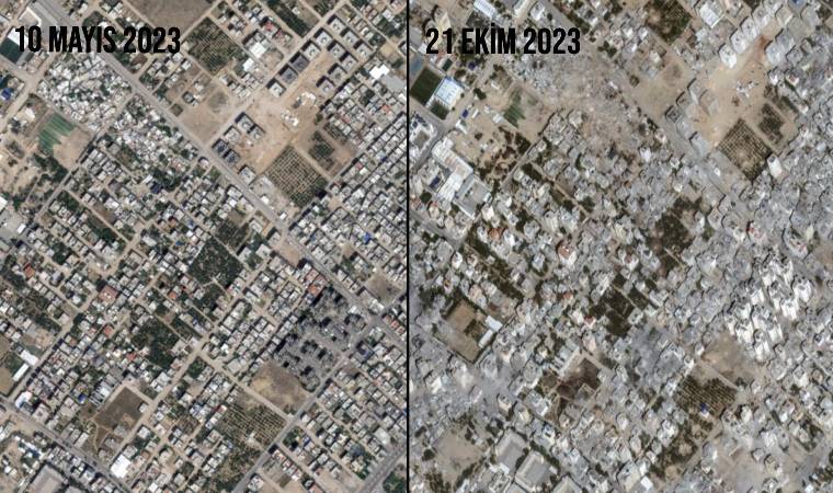 Havadan Gazze’ye saldırılarına aralık vermeyen İsrail kara harekatına hazırlanırken şu ana kadar 6 bin 546 kişinin hayatını kaybettiği Gazze’deki yıkım ise uydu fotoğraflarında görüldü.