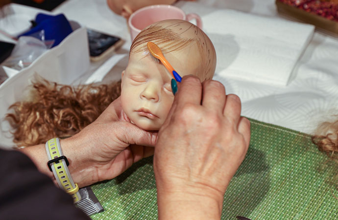 Kursiyerler, 6 gün süren yoğun eğitim kapsamında demonte haldeki bebekleri önce boyamayı, ardından fırınlamayı, sonrasında hatlarını çizmeyi, saçlarını ve kaşlarını oluşturmayı öğreniyor.