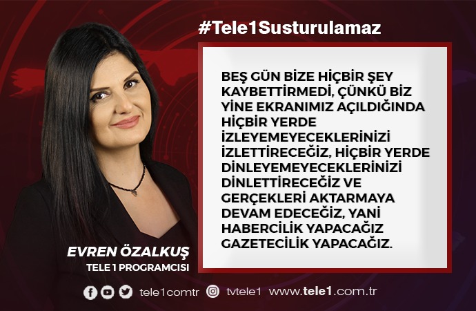 TELE1 susturulmak ve toplumun sesi kesilmek isteniyor, biz susmayacağız ve boyun eğmeyeceğiz, toplumun gerçek habere ve doğru bilgiye ulaşma hakkını sonuna kadar savunmayı sürdüreceğiz
