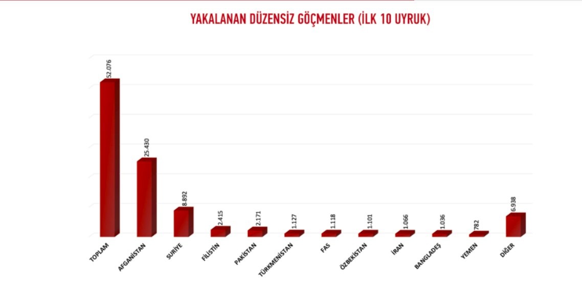 Türkiye'ye gelen kaçak mültecilerin ülkeleri ise sırasıyla şöyle: