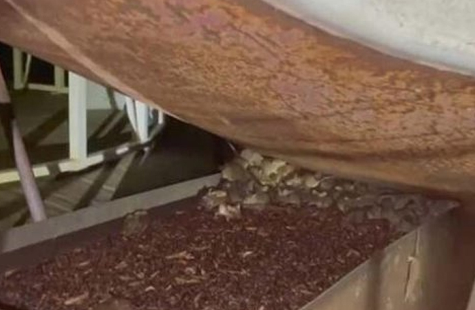Tüyler ürperten görüntülerde, boruların altından ve makinelerin üzerinden koşturan binlerce kemirgen dikkat çekiyor.