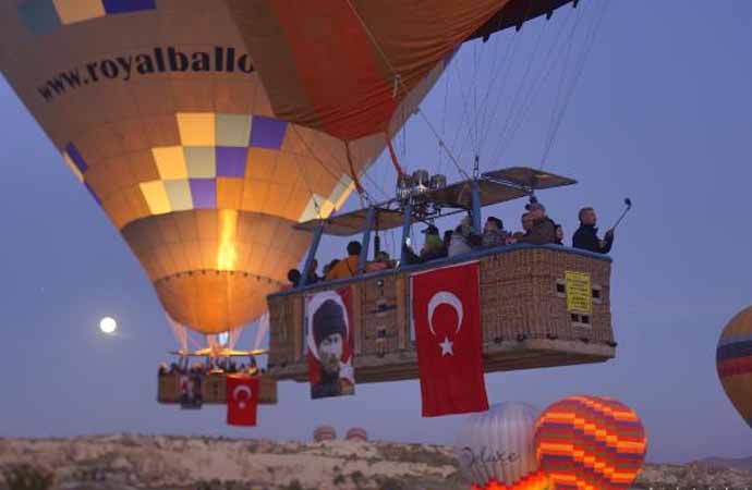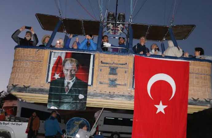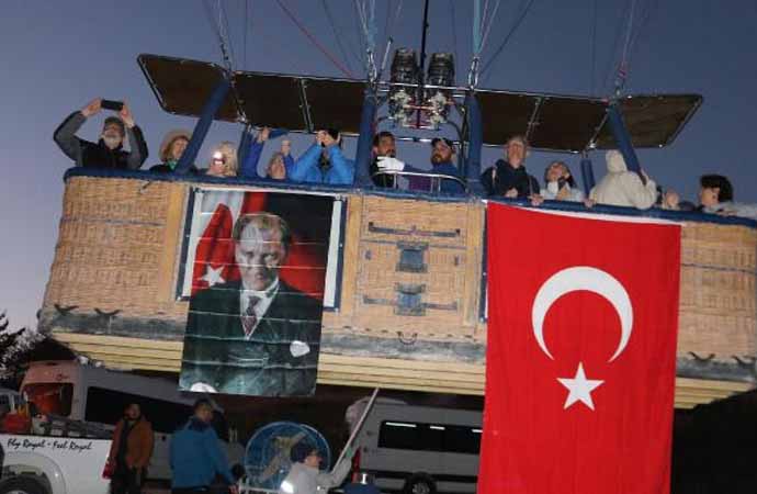 Balon Pilotu Tolga Eke, "29 Ekim Cumhuriyet Bayramı'nı biz de çocuklar gibi kutluyoruz, çok mutluyuz. Cumhuriyetimizin 100'üncü yaşında göklerde Türk bayrağını, şanlı bayrağımızı dalgalandıracağız. Dünyanın her tarafından gelen misafirlerimizle birlikte bu özel günü kutlamaktan biz de çok mutluyuz. Türk bayrağı ve Atatürk posterleriyle göklere yükseleceğiz" ifadelerini kullandı.