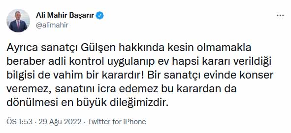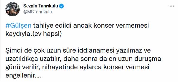 Sosyal medyada Gülşen hakkında verilen ev hapsi kararı, "konser engeli" olarak değerlendirildi.