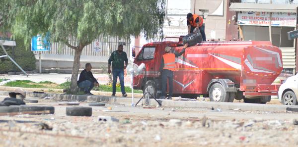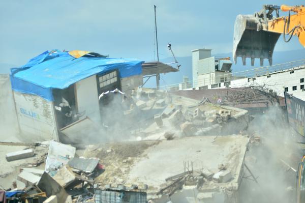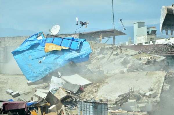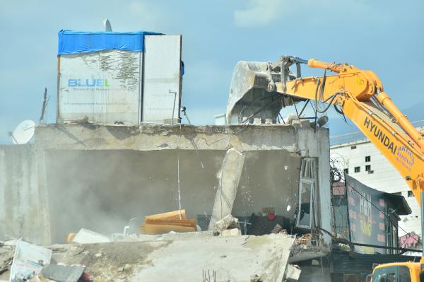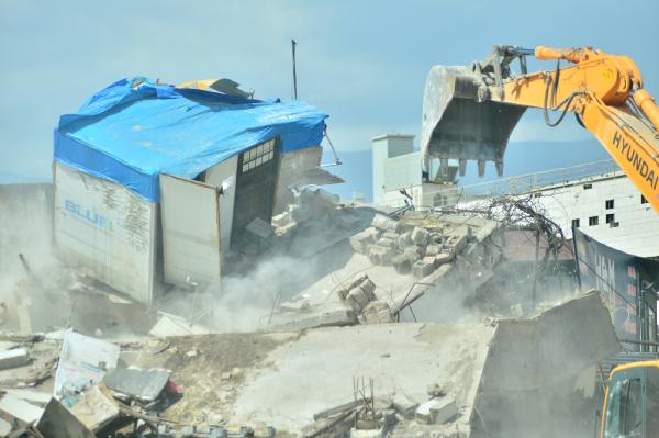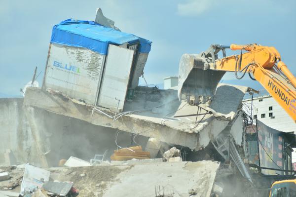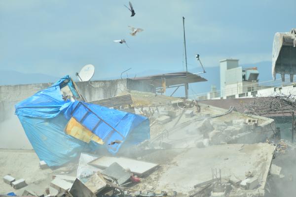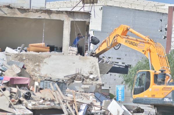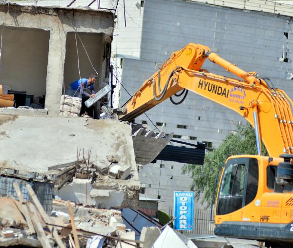 Ekskavatör operatörü, binanın üst katındaki iş yerinden ısıtıcı, vantilatör ve otomobil lastiklerinin de aralarında bulunduğu bazı eşyaları dışarı çıkardı.