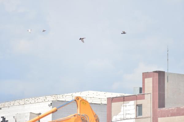 Kümesin yıkılmasıyla birlikte içindeki güvercinler uçarak son anda kurtuldu.