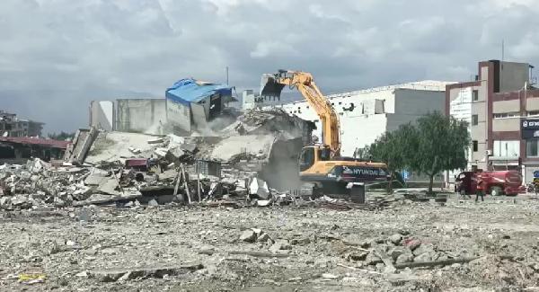 Operatör daha sonra binayı yıkmaya başladı.