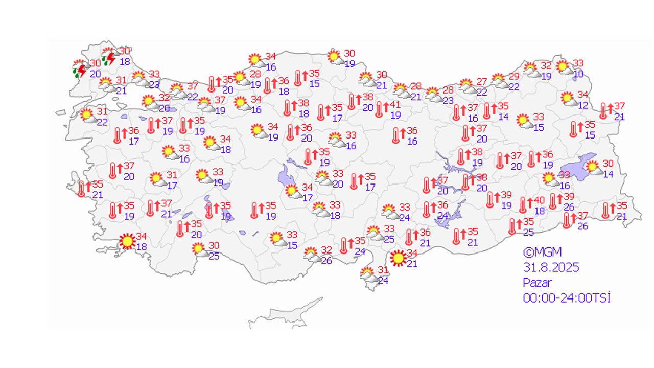 Meteoroloji Genel Müdürlüğü (MGM) tarafından yayımlanan 30-31 Ağustos hava durumu raporunu derledik.