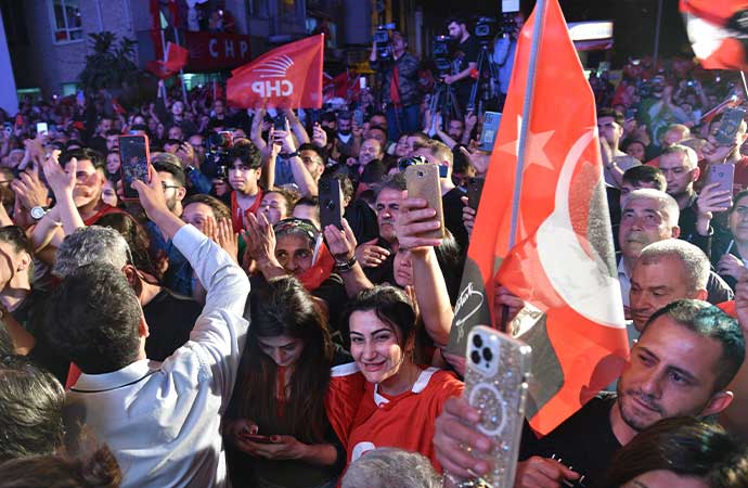 İlk sonuçlar açıklanır açıklanmaz Cumhur İttifakı'nın oylarında yaşanan ciddi oran bir düşüş olduğu görüldü. Ekonominin kötü gidişatı ve milyonlarca vatandaşın yaşadığı geçim derdi, sandığa yansıdı. Ana muhalefet partisi CHP, kesin olmayan sonuçlara göre, seçimin en çok oyu toplayan partisi oldu. 14 büyükşehir, 21 il ve çok sayıda ilçede rakiplerine fark atarak erken zafer ilan eden CHP'de büyük bir seçim yaşandı. Seçimlerde kritik öneme sahip olan ve Cumhur İttifakı'nın kazanmak için yoğun çaba sarf ettiği İstanbul, Ankara ve İzmir'de kazanan taraf CHP oldu. Cumhur İttifakı'na karşı seçimlere tek parti olarak giren CHP'de coşku erken saatlerde başladı. Türkiye'nin dört bir yanında milyonlarca seçmen sokaklara döküldü.