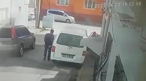 Demirci'nin minibüsten sırtını tutarak aşağı inerken, çevredekilerin de sağlık ekiplerine haber vermeye çalıştığı güvenlik kamerasına yansıdı.