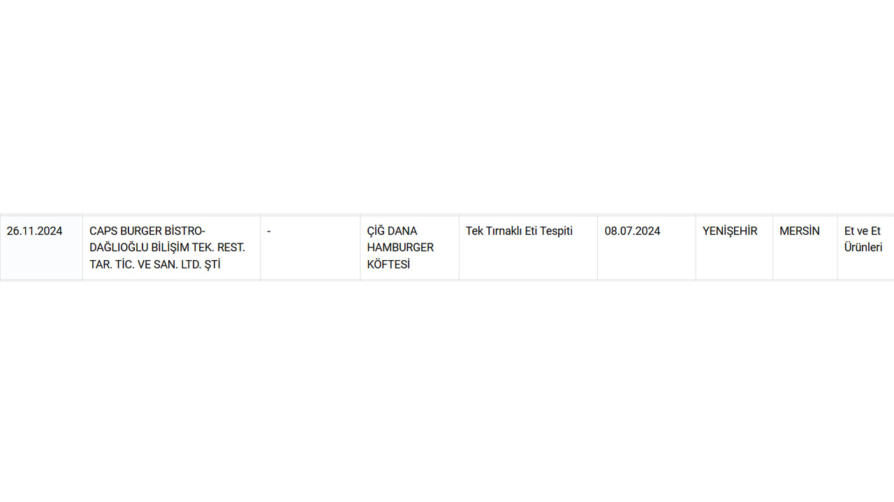 Bakanlık tarafından açıklanan listeler gündemdeki yerini korumaya devam ederken, çiğ dana hamburger köftesinde 'tek tırnaklı eti' tespit edildi.