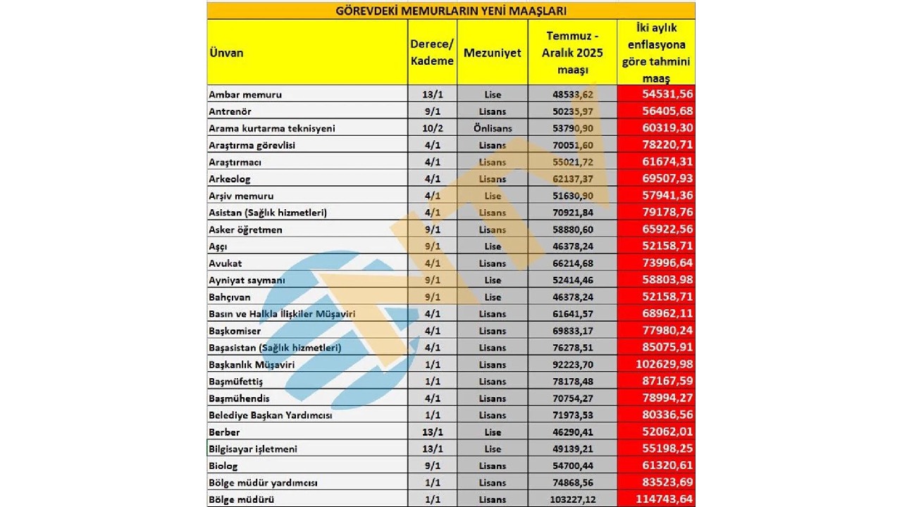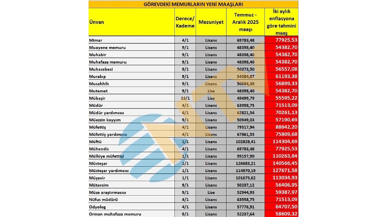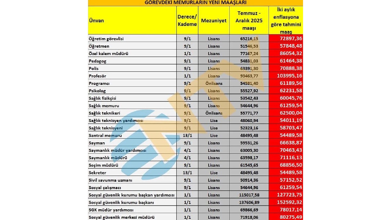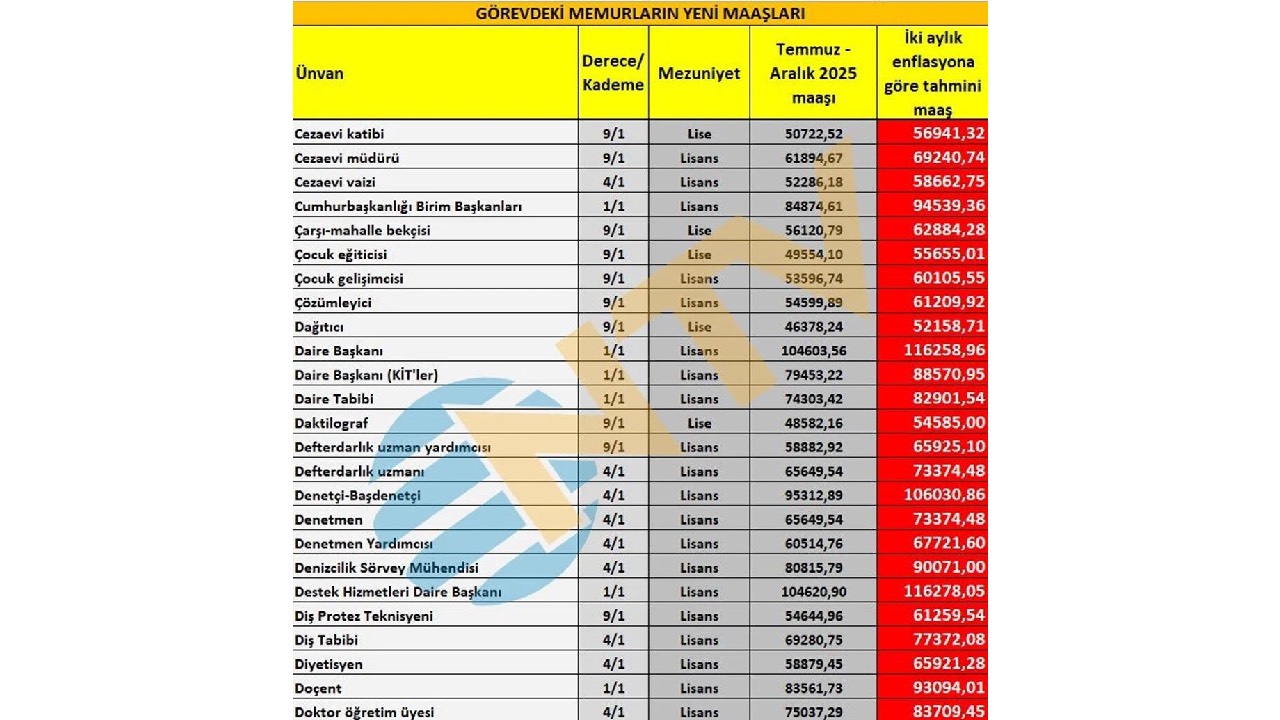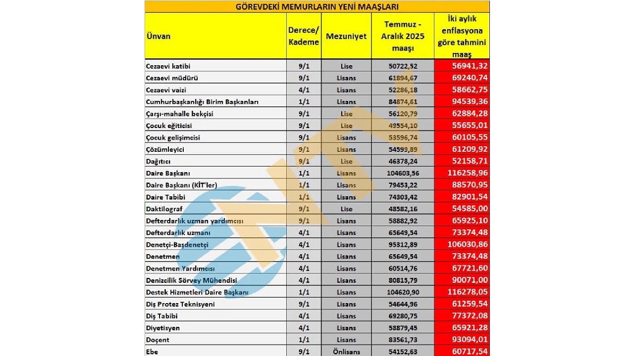 Ortaya çıkan iki aylık zam oranlarına göre yapılan hesaplama net değil. Eylül, Ekim, Kasım ve Aralık ayı enflasyon rakamları da belli olduktan sonra Ocak ayında zamlı maaşlar hesaplara geçmiş olacak. Bu nedenle geriye kalan 4 ayın enflasyon verisinin takip edilmesi gerekiyor.