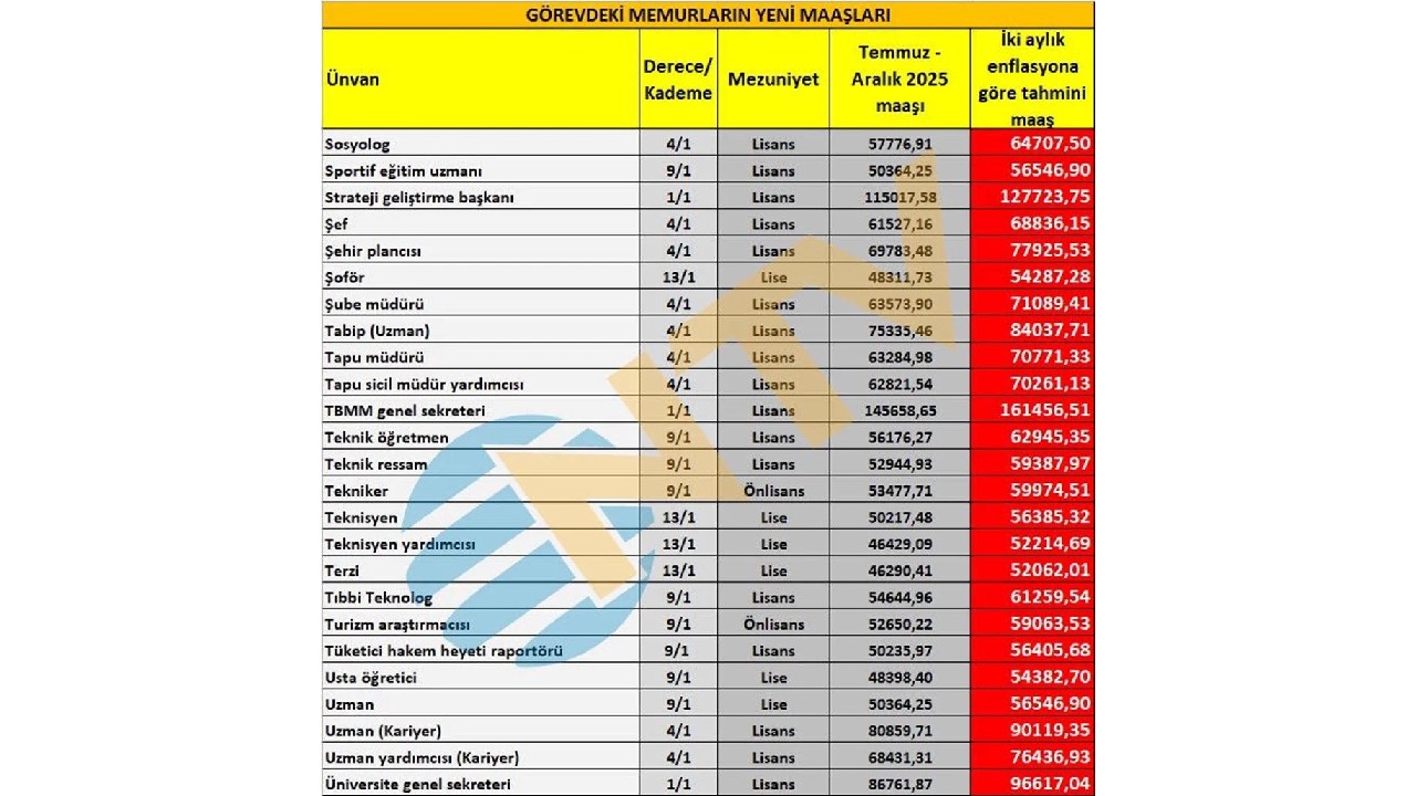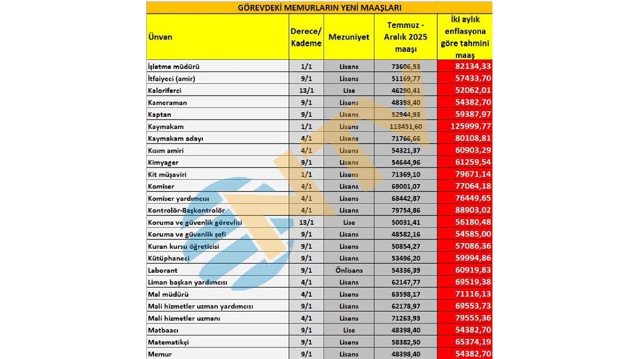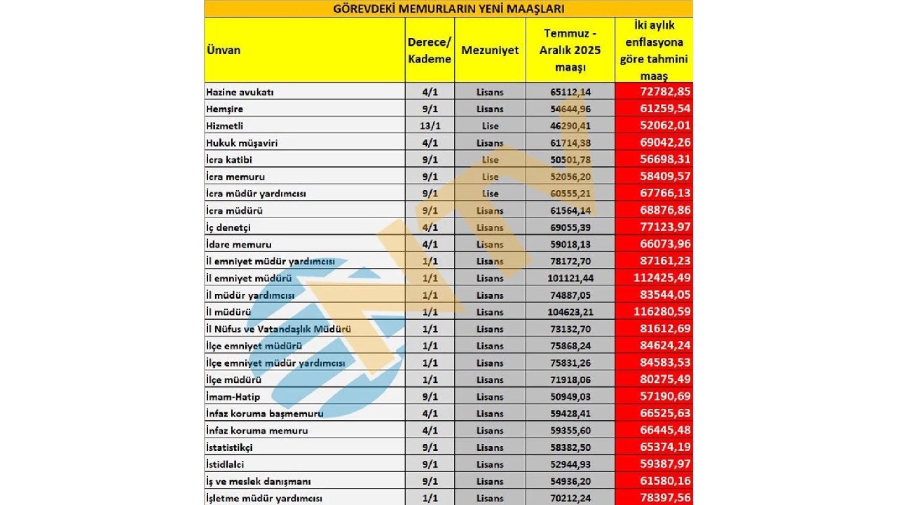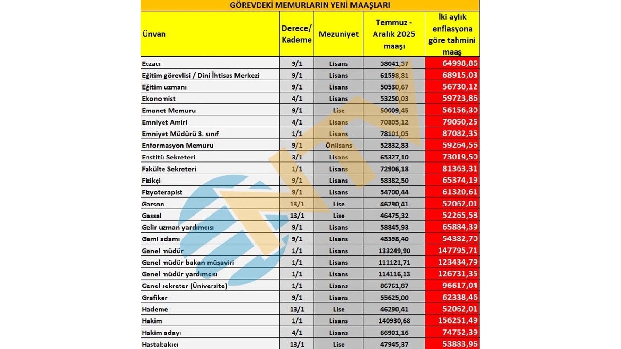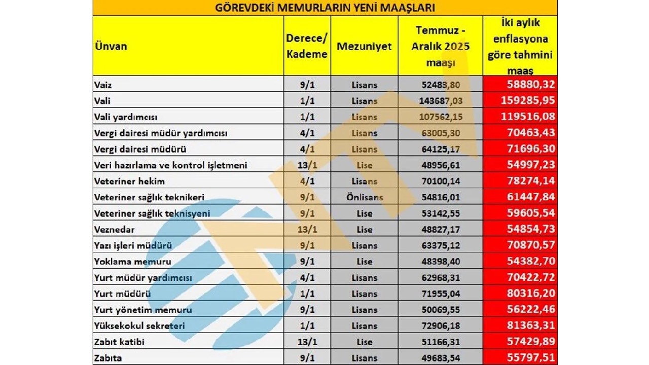 Ortaya çıkan iki aylık zam oranlarına göre yapılan hesaplama net değil. Eylül, Ekim, Kasım ve Aralık ayı enflasyon rakamları da belli olduktan sonra Ocak ayında zamlı maaşlar hesaplara geçmiş olacak. Bu nedenle geriye kalan 4 ayın enflasyon verisinin takip edilmesi gerekiyor.