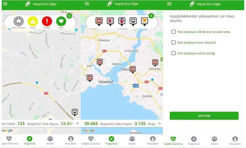 Sağlık Bakanı Fahrettin Koca'nın duyurduğu "Hayat Eve Sığar" uygulaması yayınlandı. Google Play Store'da ve iOS App Store'dan indirilen uygulama üzerinden bölgedeki enfekte kişilerin yoğunluğu, evdeki izolasyon ve riskli bölgelerin yoğunluğu bilgilerine ulaşılabiliyor.
