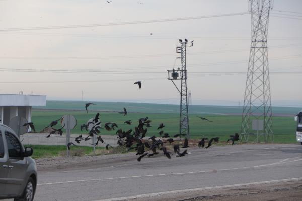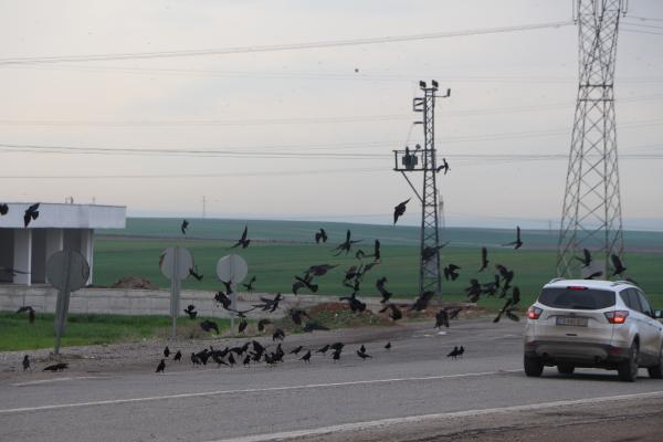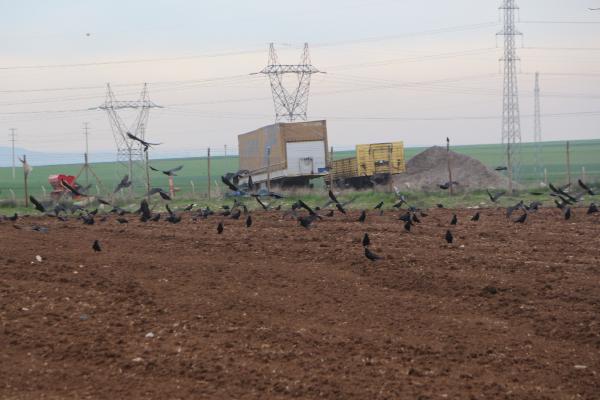 Habur Sınır Kapısı yakınlarında çok sayıda karganın tarla ve yol kenarlarında olduğu görüldü.