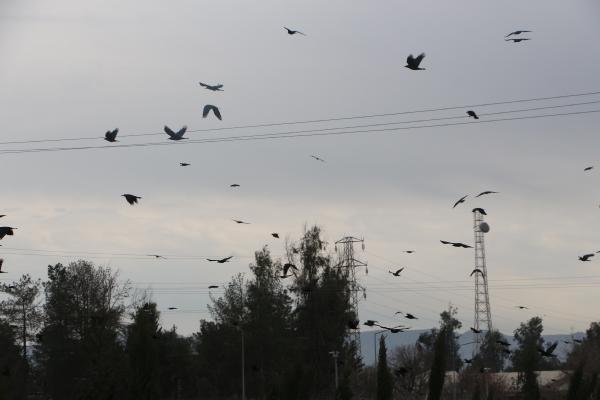 Yiyecek arayan kargalar, araçların korna sesleriyle havalandı.