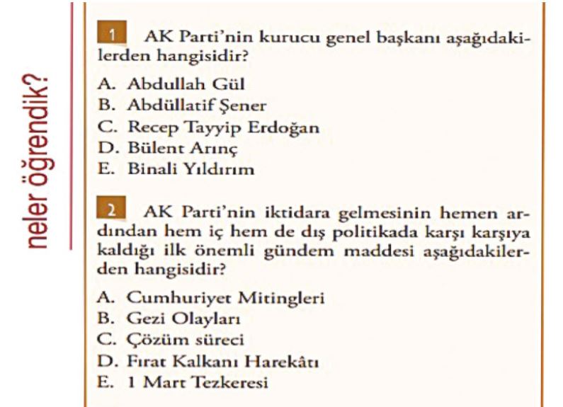 AKP’nin 2002-2018 dönemi, AÖF İnkılap Tarihi ve Atatürkçülük ders kitabına girdi. Açıköğretim’deki ders kitabına, AKP dönemiyle ilgili 47 sayfa eklendi. AKP’nin politikasından övgüyle söz edildi. Çevrimiçi sınavda öğrencilere, MİT TIR’ları, AKP’nin karşı karşıya kaldığı krizlere yönelik sorular yöneltildi.