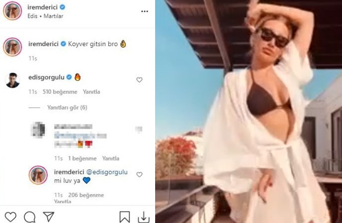 Derici'nin dans performansı karşısında sessiz kalamayan Edis, alev emojisi koydu. Derici ise Edis'e "Seni seviyorum" diyerek karşılık verdi.
