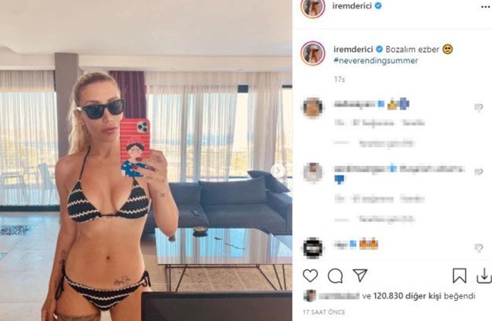 Derici dans performansından önce de "Bozalım ezber" notuyla peş peşe bikinili ve tatil pozlarını paylaştı.