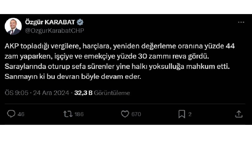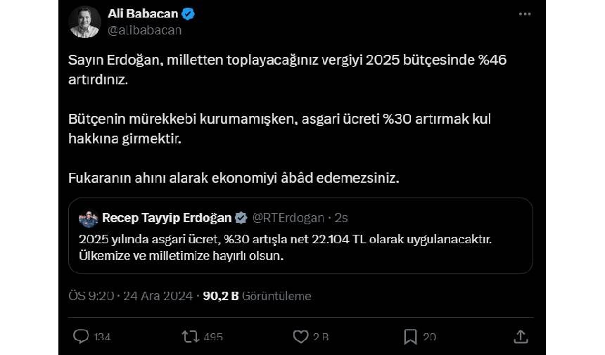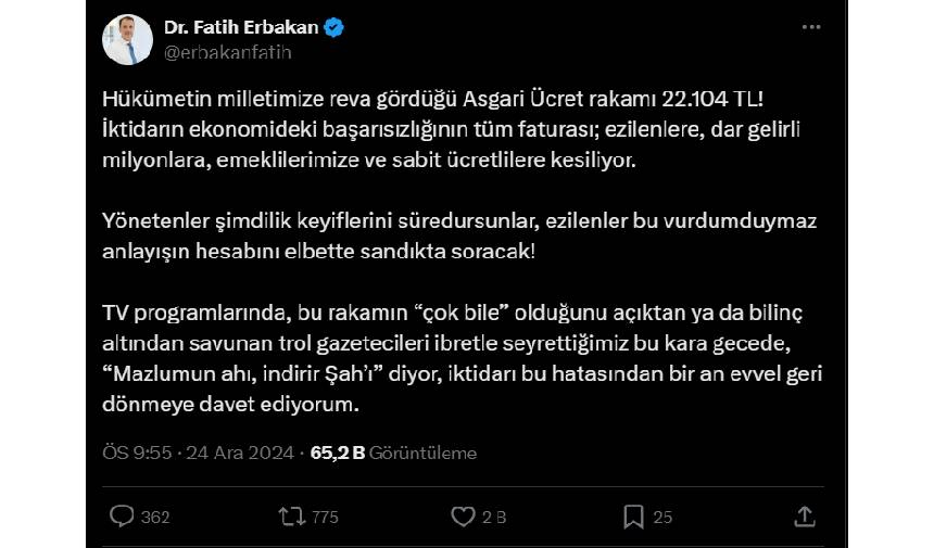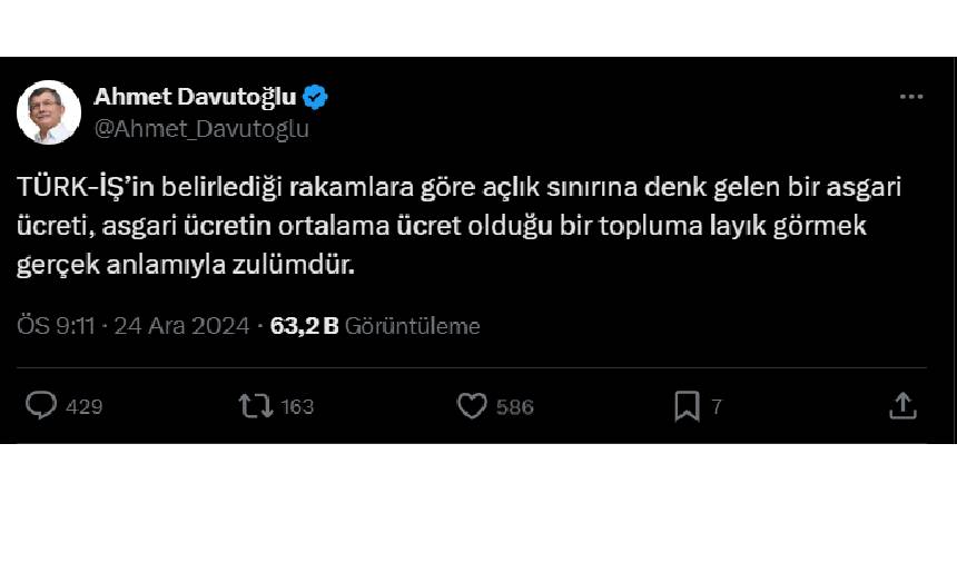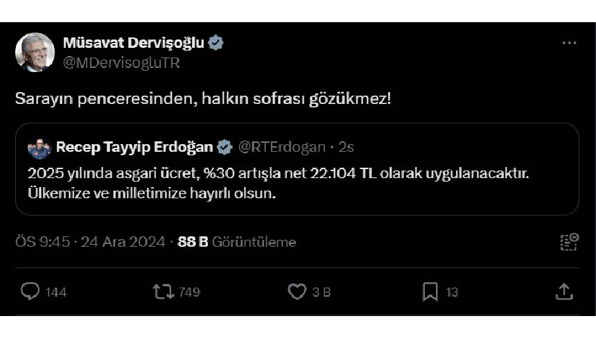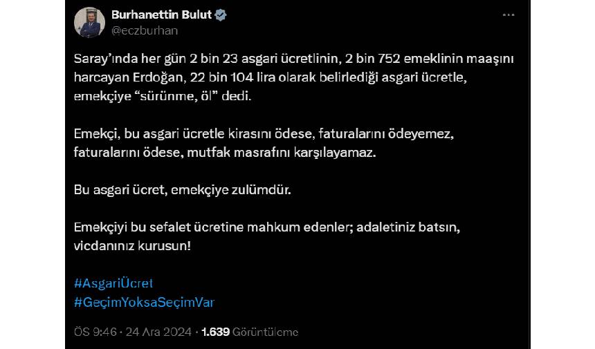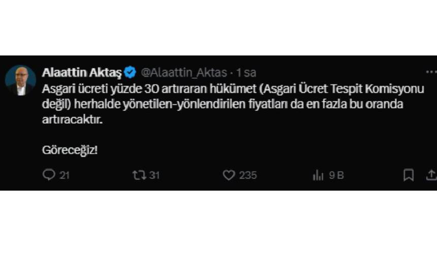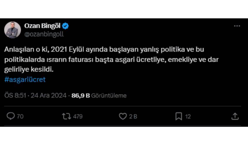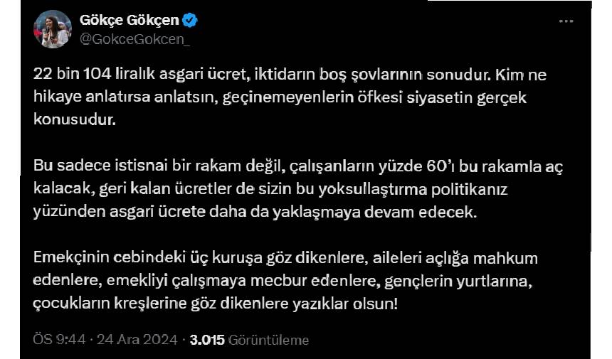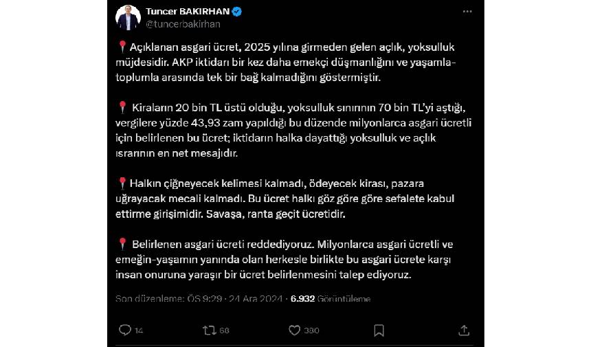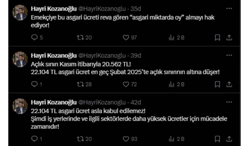 Özel, 2025 yılında uygulanacak olan asgari ücretin açıklanmasının ardından sosyal medya hesabından yaptığı paylaşımda, "İşçi sınıfını üretimden gelen gücünü kullanmaya davet ediyorum" ifadelerini kullandı.