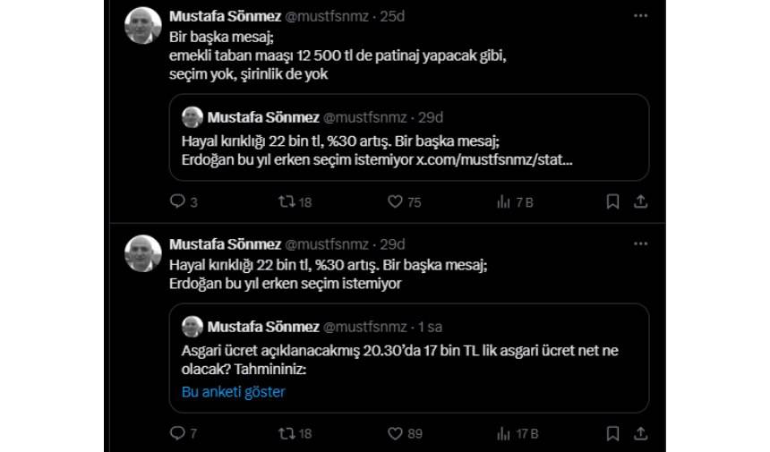 Ekonomist Mustafa Sönmez'de açıklanan asgari ücret ile birlikte 2025 yılında olası bir erken seçimin görünmediğini belirterek, 'Seçim yok şirinlik yok' yorumunu yaptı.