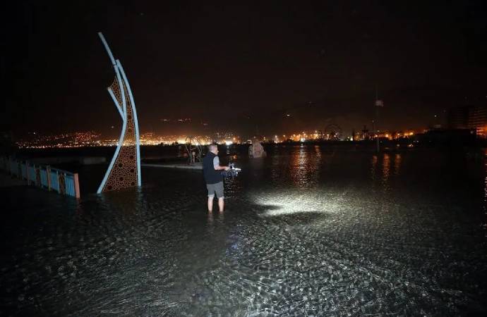 Deniz suyunun yükselmesi sonucu balıkçı barınağından başlayarak birkaç yüz metre çevresinde baskınlar oluştu.