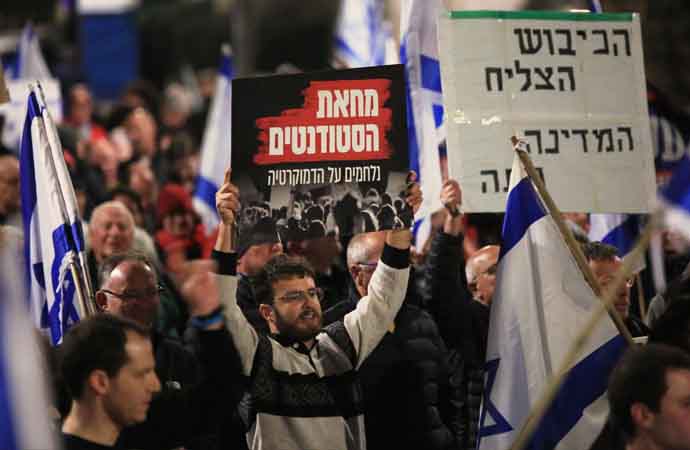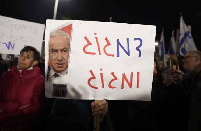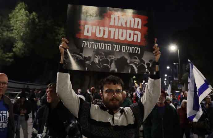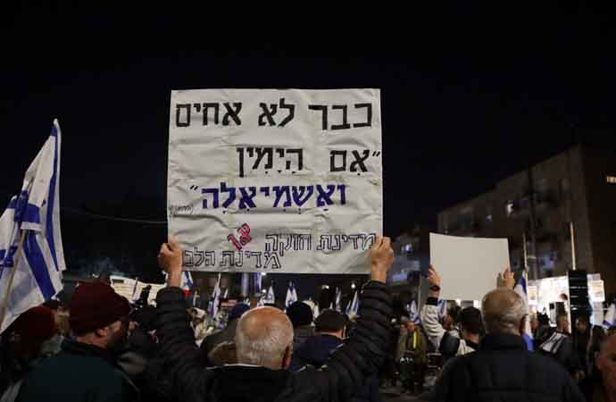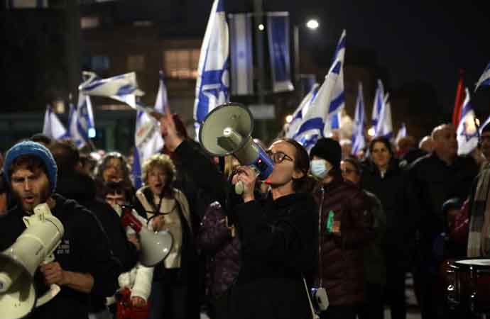 İsrail'de yargının yetkilerinin kısıtlanmasına tepki gösteren yüzlerce kişi Cumhurbaşkanının evinin önünde toplandı