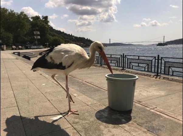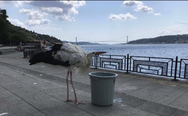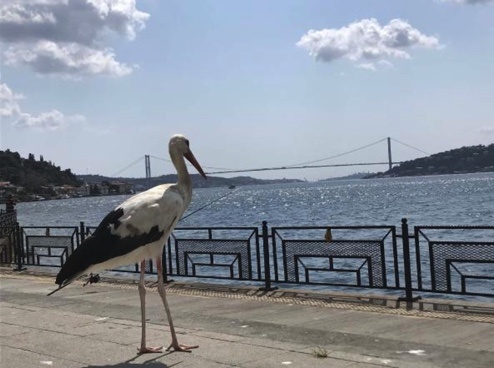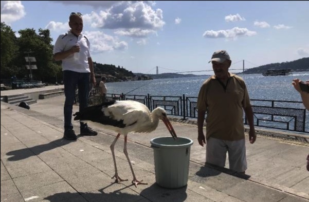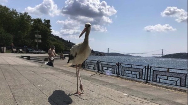 Bir süredir Üsküdar Vaniköy Parkı'nı mesken edinen bir leylek, parkın müdavimleriyle arkadaş oldu.