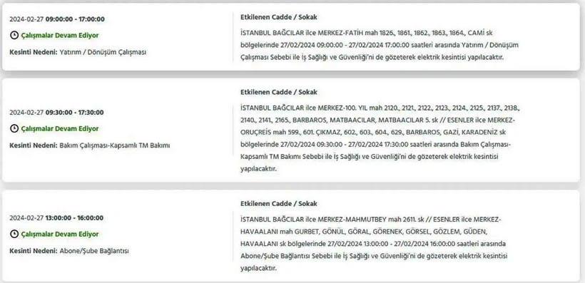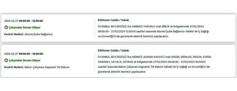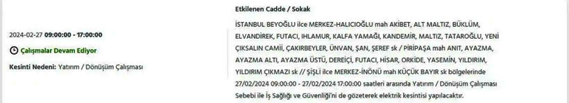 İstanbul'da elektrik kesintisi. Şişli, Beşiktaş, Beyoğlu, Bakırköy, Bahçelievler, Avcılar, Beylikdüzü, Esenyurt, Bağcılar, Küçükçekmece başta olmak üzere İstanbul'da büyük elektrik kesintisi yaşanacak. İşte, İstanbul'da planlı ve bakım çalışması kapsamında elektrik kesintisi uygulanacak ilçe ve mahalleler: