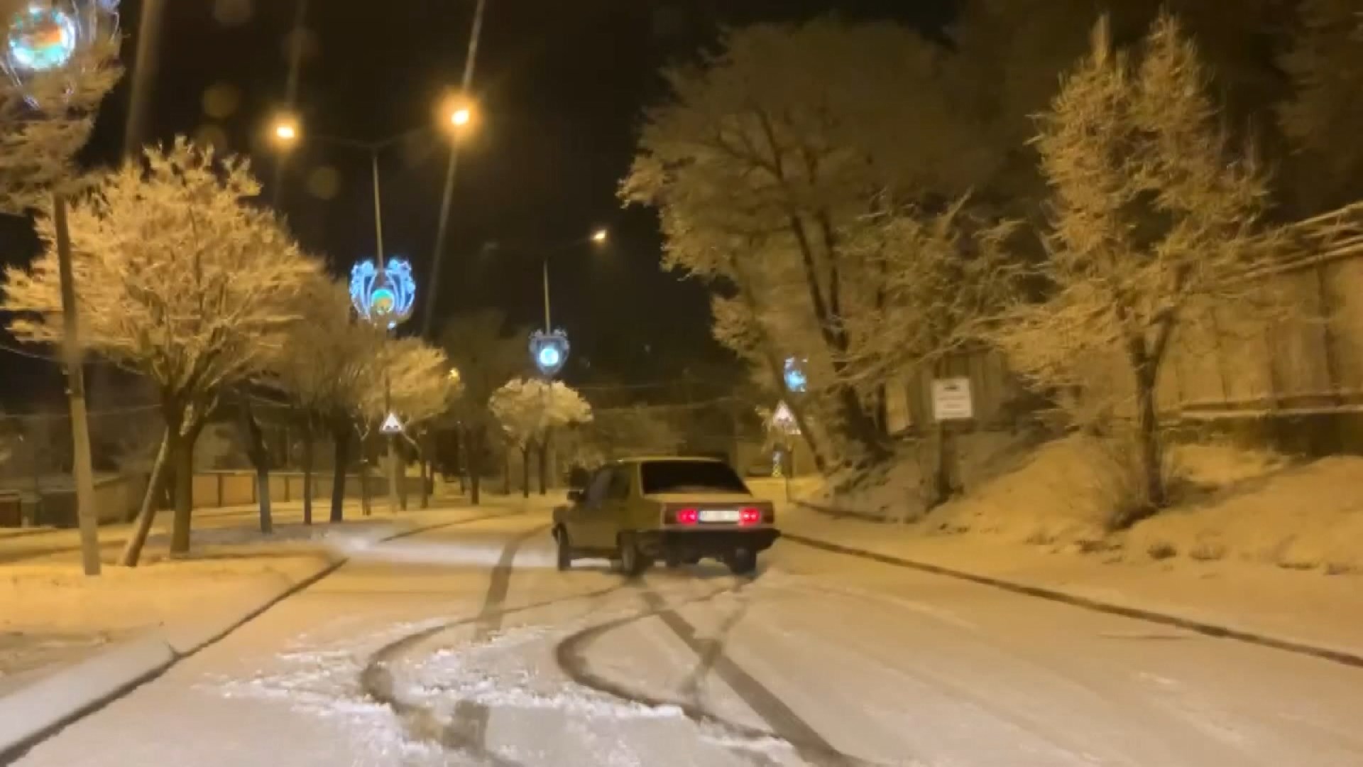 Vatandaşlar kartopu oynamak için sokağa çıkarken bir sürücünün kar yağışı sırasında drift yaptığı anlar ise kameraya yansıdı.