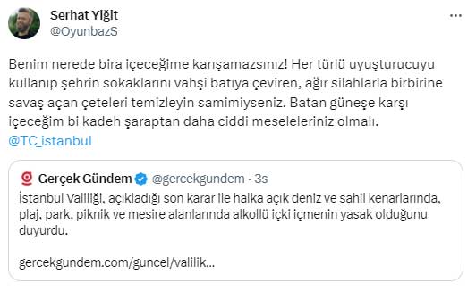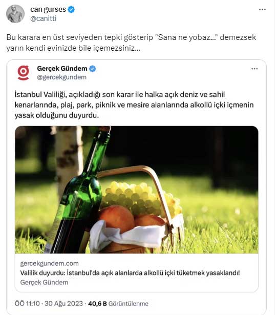 Can Gürses: Bu karara en üst seviyeden tepki gösterip "Sana ne yobaz..." demezsek yarın kendi evinizde bile içemezsiniz...