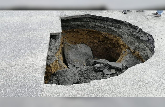 Henüz bilinmeyen bir sebeple caddenin ortasında göçük oluştu. Yaklaşık 3 metre derinliğinde ve 4 metre genişliğindeki göçüğe, trafik akışının yoğun olduğu caddede şans eseri düşen araç olmadı.