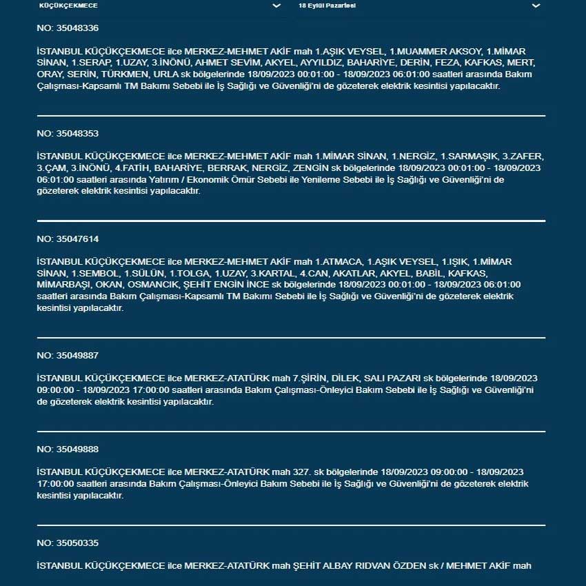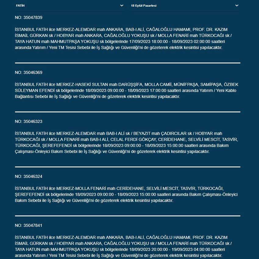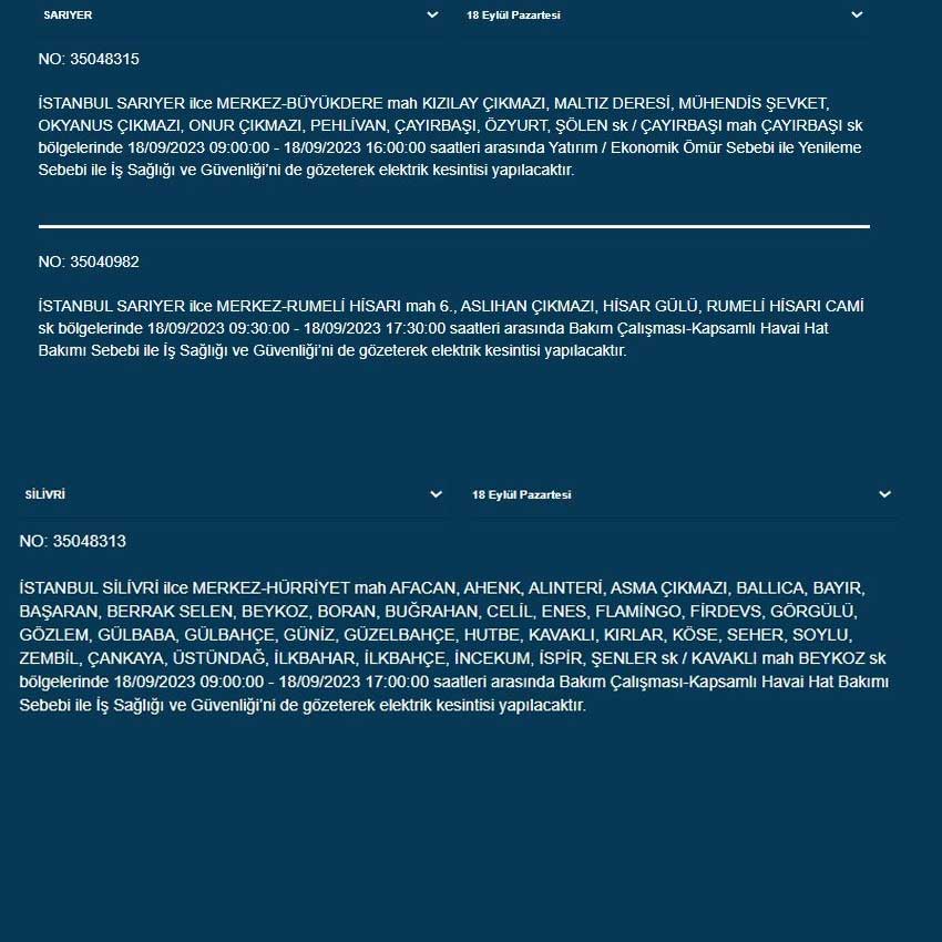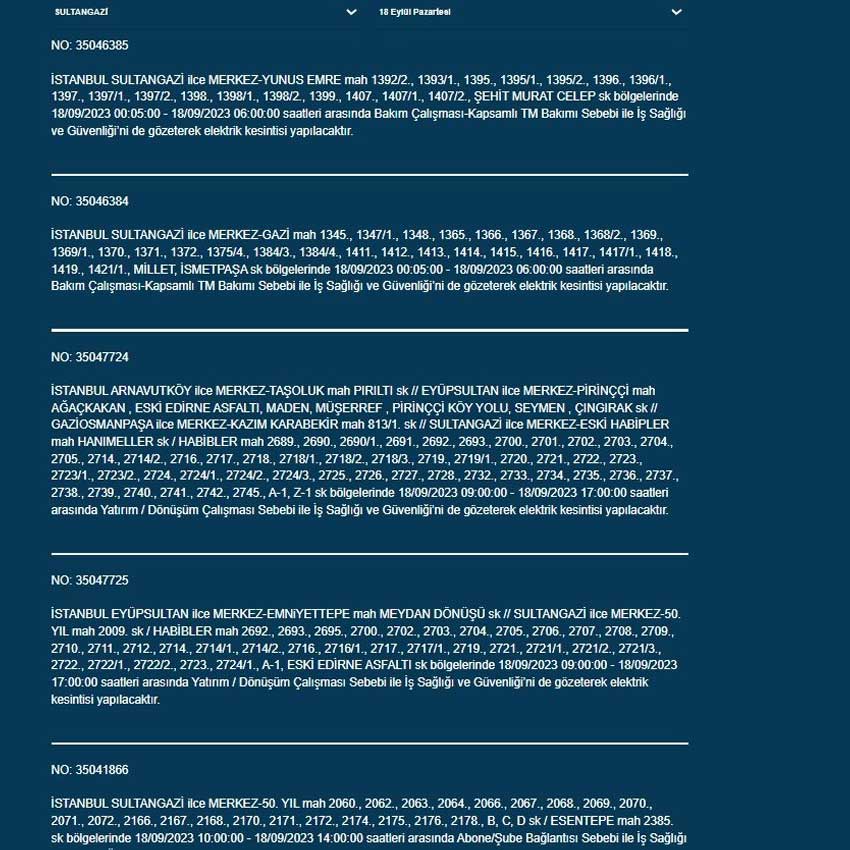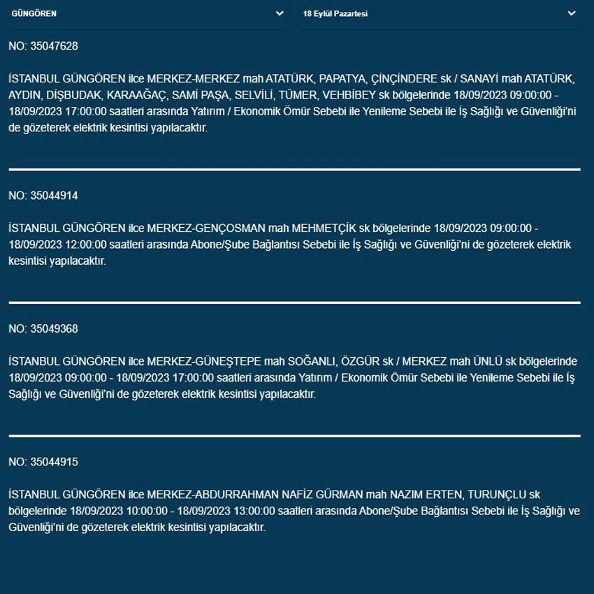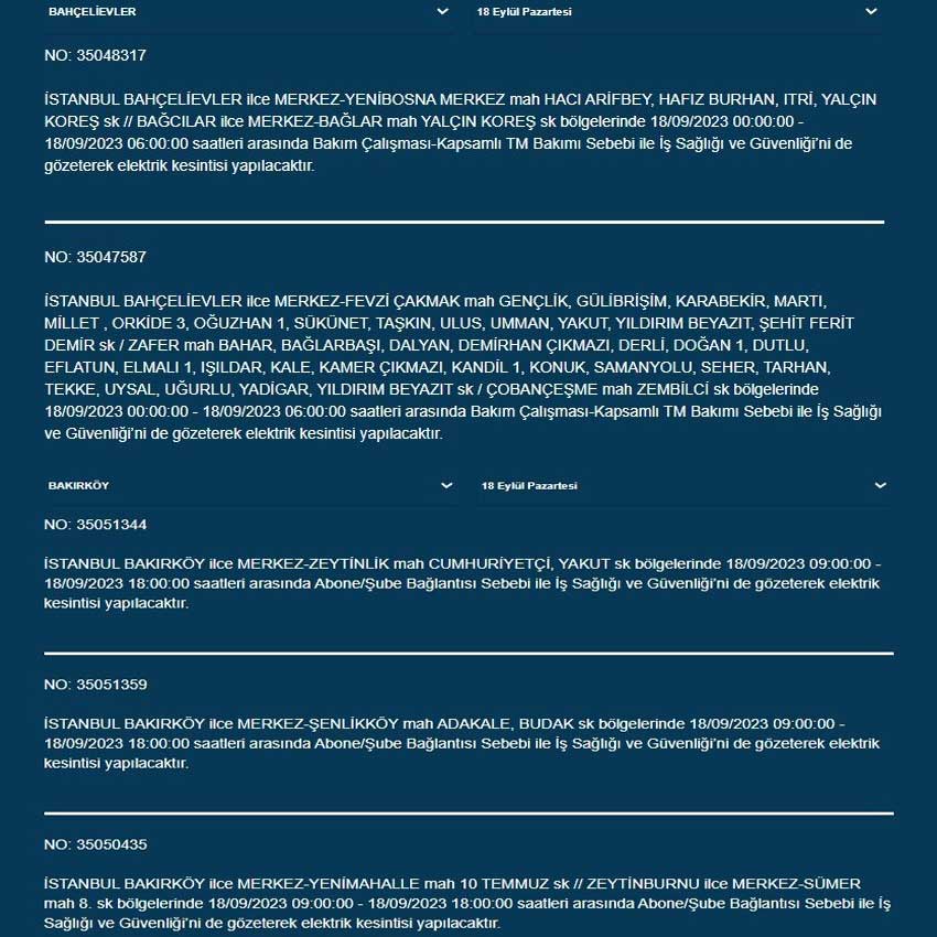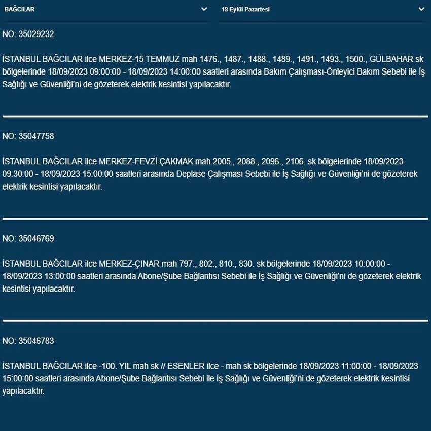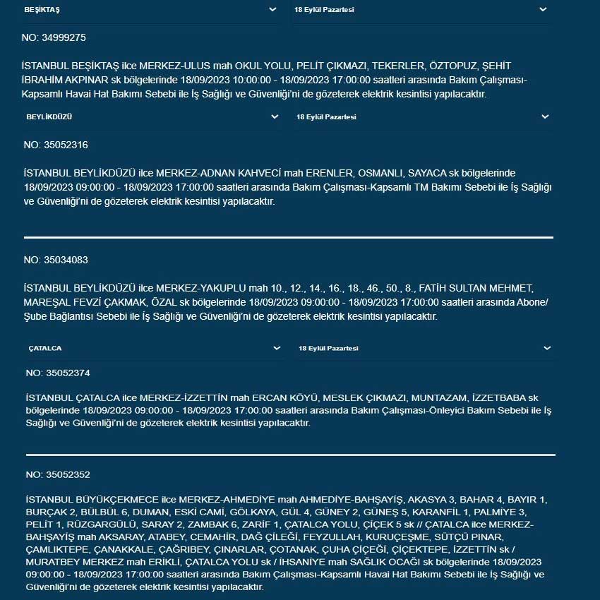 BEDAŞ'tan yapılan açıklamaya göre bugün (18 Eylül 2023) İstanbul'un 19 ilçesinde elektrik kesintisi yaşanacak. İşte o ilçeler...