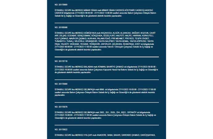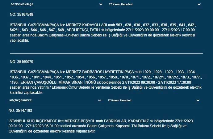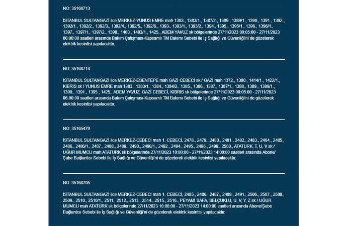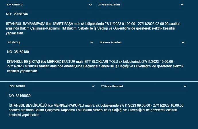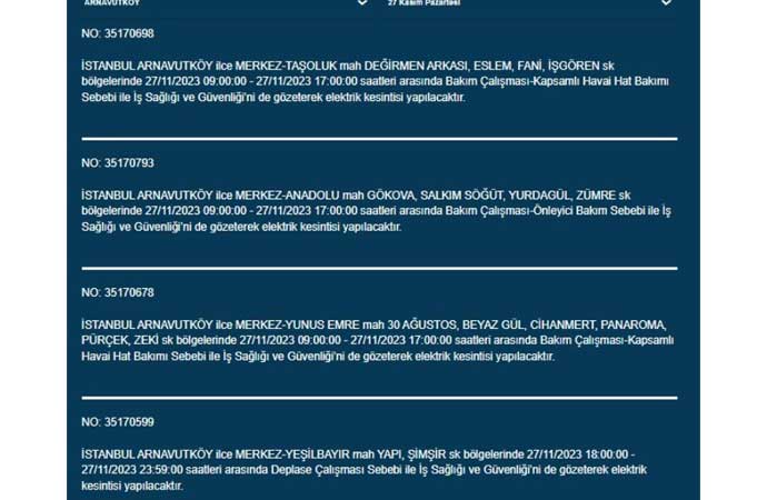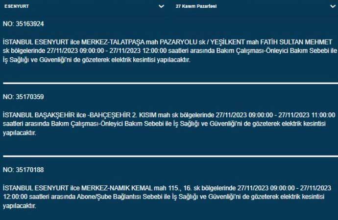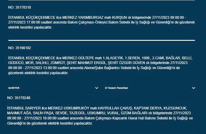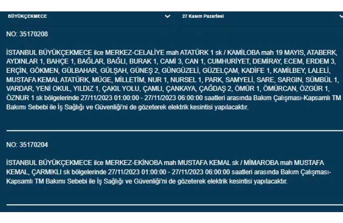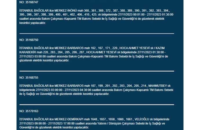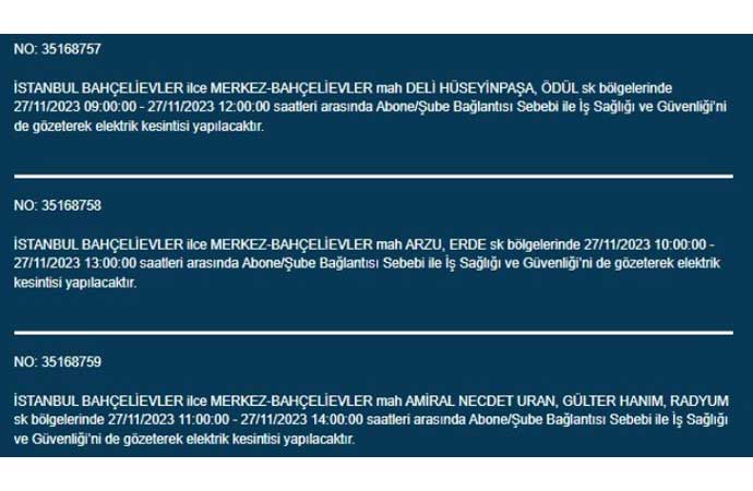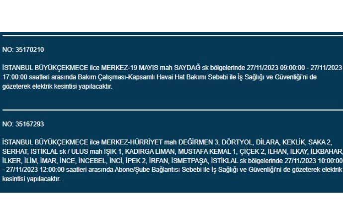 BEDAŞ İstanbulluları elektrik kesintisi konusunda uyardı. Şirketten yapılan açıklamaya göre 20 ilçede belirli saatlerde elektrik kesintisi yaşanacak. İşte elektriklerin kesileceği o ilçeler;