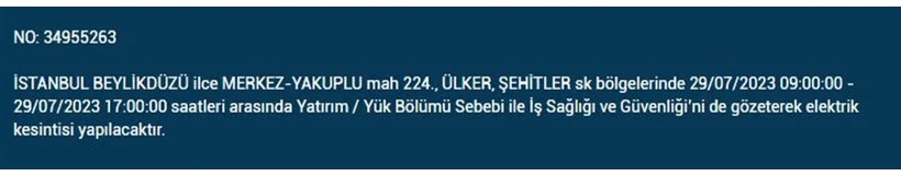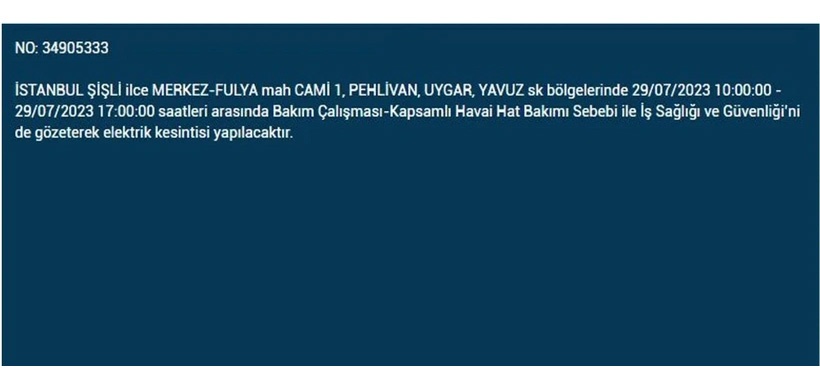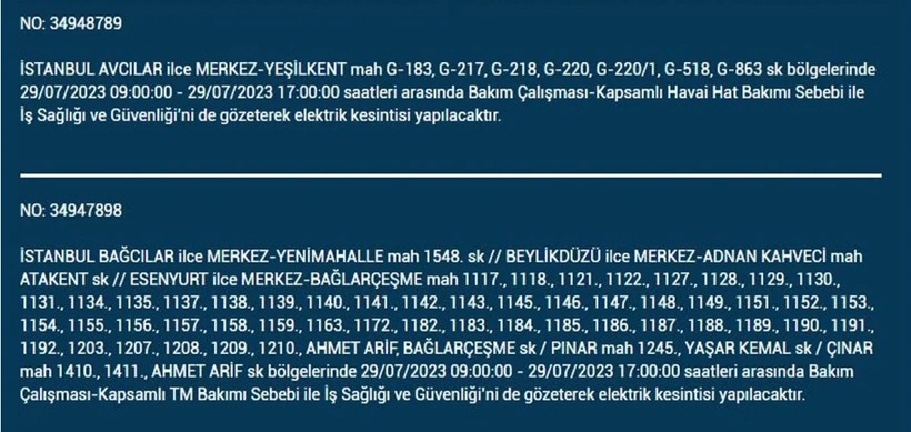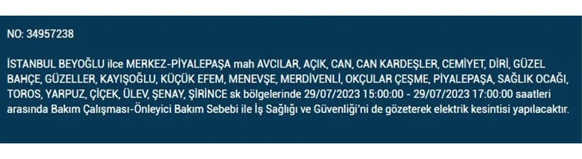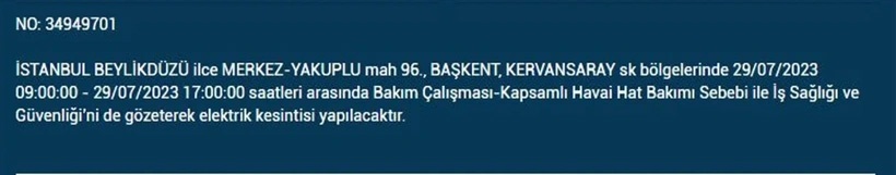 İstanbul'da 29 Temmuz 2023 Cumartesi günü planlı ve bakım çalışması amaçlı elektrik kesintilerinin olacak. BEDAŞ elektrik kesintilerinden etkilenecek ilçe ve mahalleleri açıkladı. İşte o mahalle ve ilçeler...