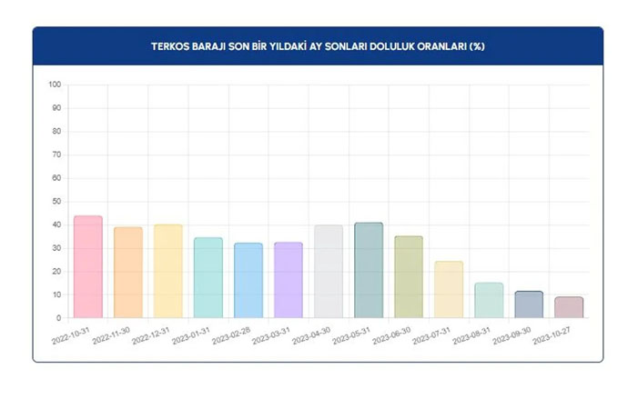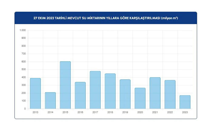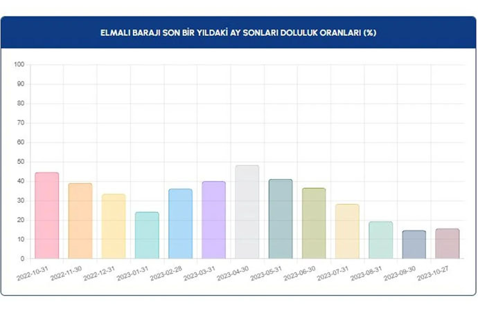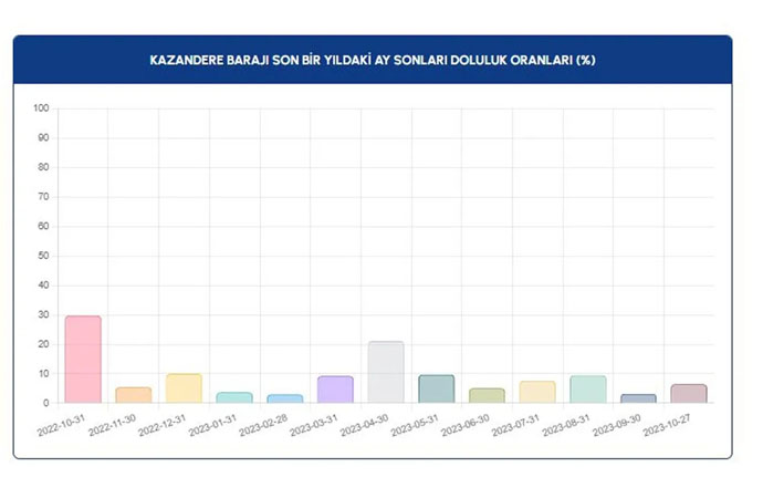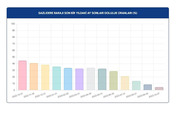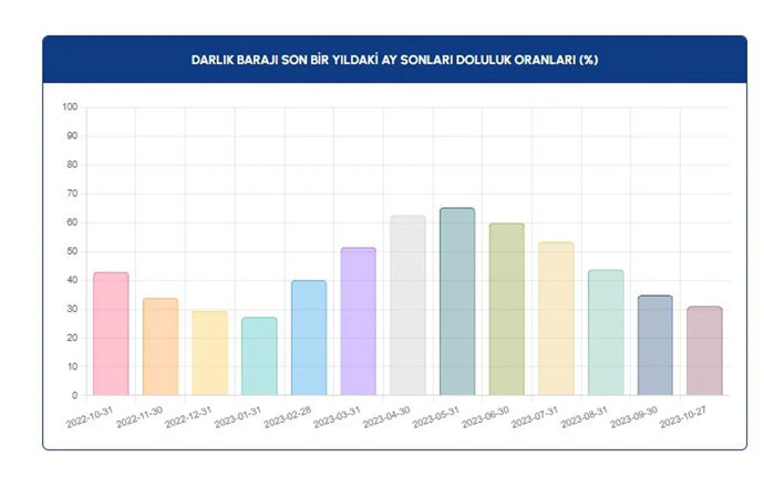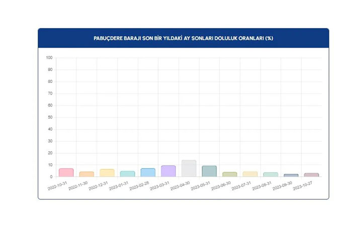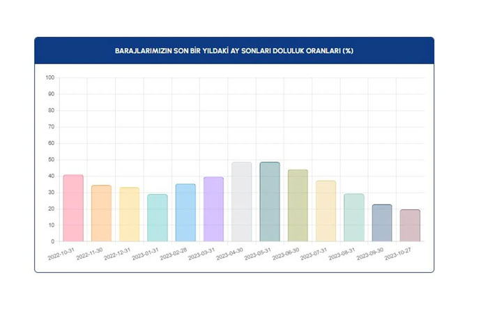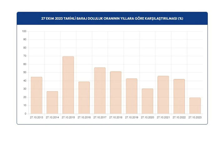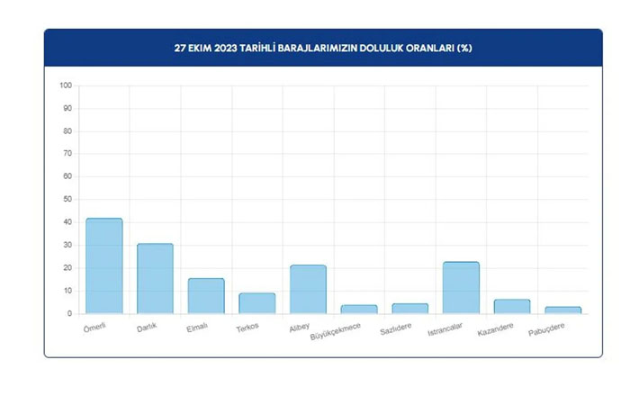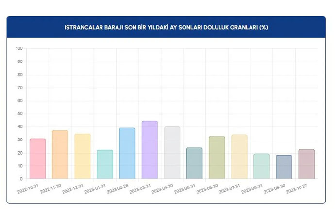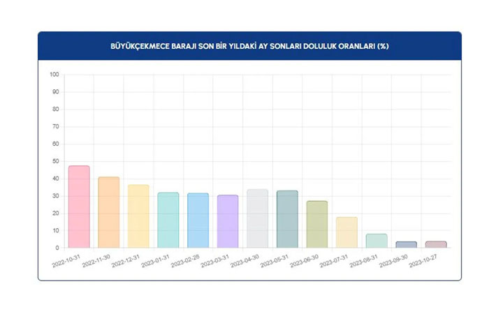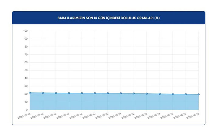 İstanbul Su ve Kanalizasyon İdaresi'nin (İSKİ) resmi verilerine göre, 27 Ekim Cuma gününde İstanbul'da baraj doluluk oranı yüzde 19.62 olarak açıklandı. İşte konuyla ilgili ayrıntılı grafikler: