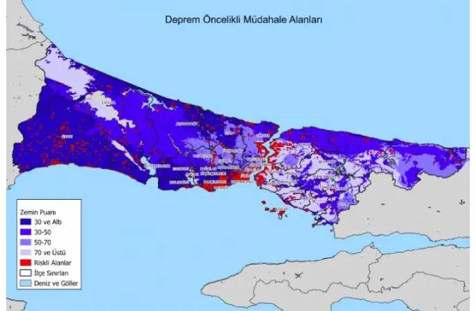 Dr. İshak Yılmaz sözlerine şöyle devam etti: 'Lokal olarak baktığımız zaman riski daha düşük olan yerler de var. Arnavutköy, Çatalca... Avrupa yakasında buralarda zemin sağlam. Haritada koyu kahverengi ve turuncuyla işaretlenmiş yerlerde zemin sağlam, bu nedenle deprem sonrası tehlike daha düşük.