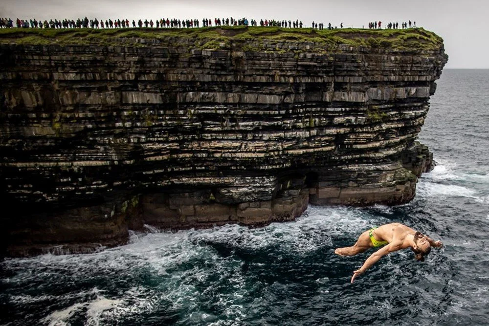 Romanyalı Catalin Preda, 27 metrelik platformdan atlıyor. Fotoğrafçı ise Morgan Treacy.