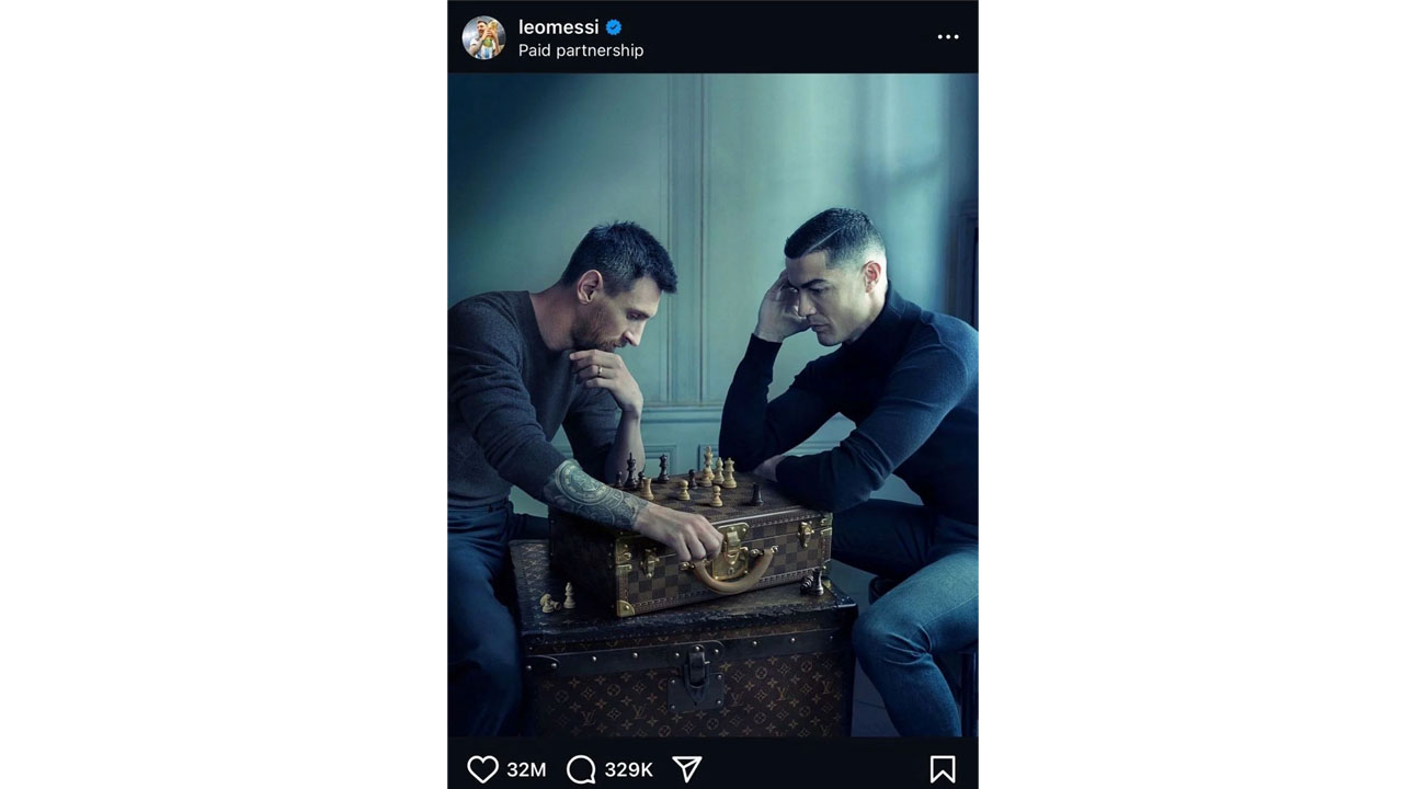 Louis Vuitton’un reklam kampanyası için tasarladığı fotoğraf Messi’nin Instagram profilinde milyonlarca beğeni aldı. (32 Milyon Beğeni)