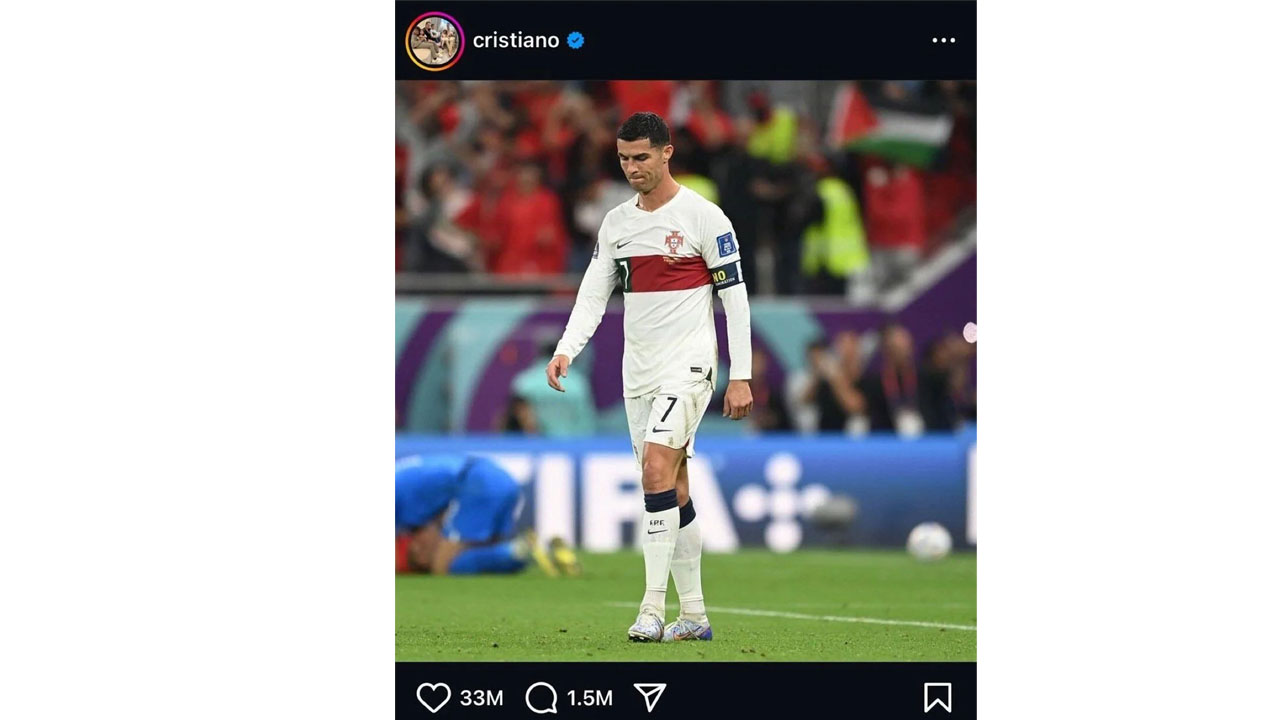 Portekiz'in Fas'a yenilip Dünya Kupası'ndan elenmesinin ardından sahayı terk eden Cristiano Ronaldo. (33 Milyon Beğeni)