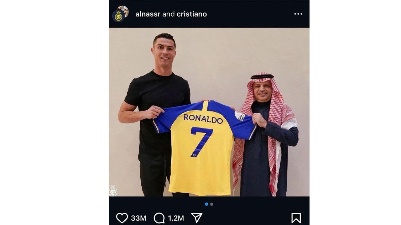 Ronaldo’nun, Al Nassr ile anlaştığını duyurduğu fotoğraf. (33 Milyon Beğeni)