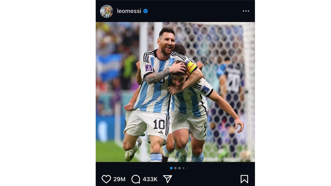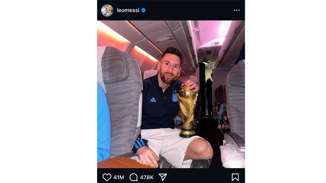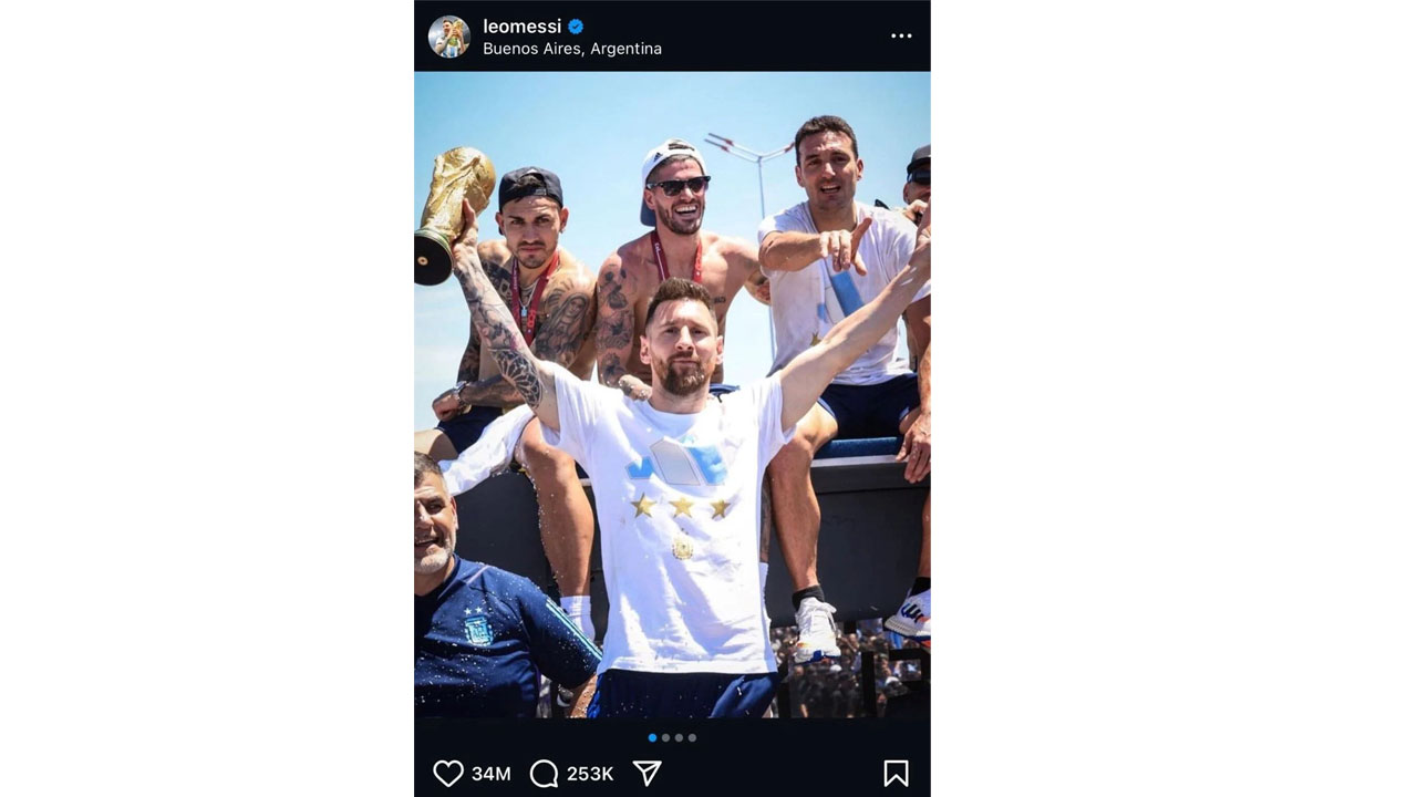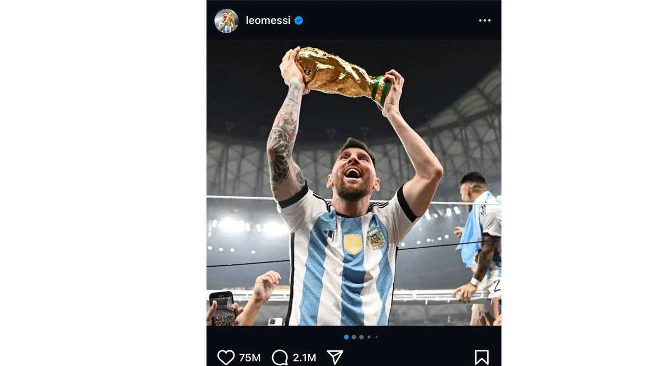 Lionel Messi, Arjantin ile Dünya Kupası'nı kazanmanın sevincini yaşadığı anı paylaştı ve dünyanın en çok beğenilen Instagram paylaşımı oldu. (75 Milyon Beğeni)