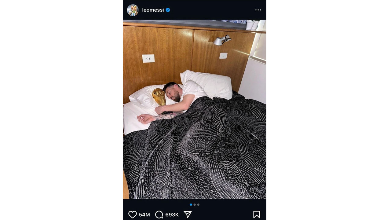 Lionel Messi, Dünya Kupası ile uyuduğu anı paylaşıyor. (54 Milyon Beğeni)