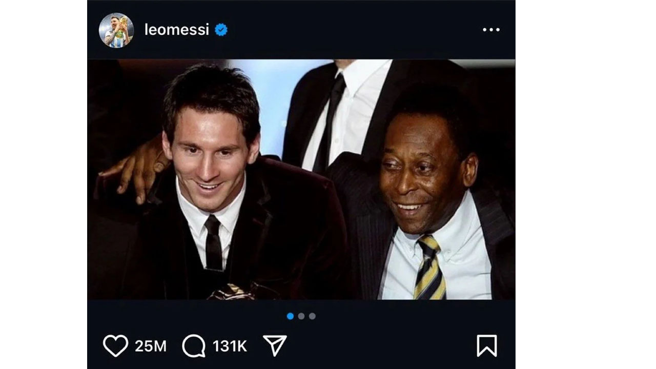 Lionel Messi, tüm zamanların en büyük profesyonel futbolcularından biri olan Pelè'nin ölüm gününde onu andı. (25 Milyon Beğeni)